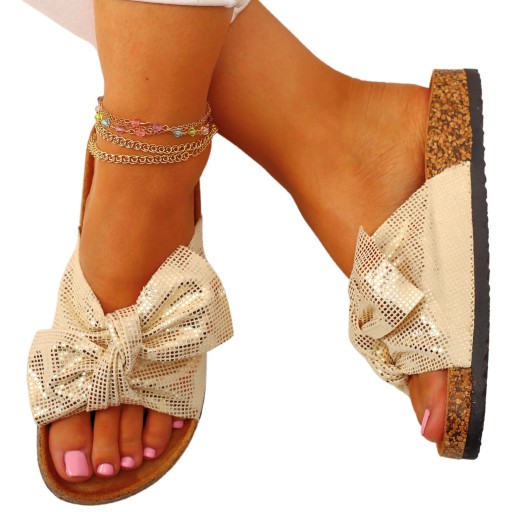 СТИЛЬНЫЕ ЖЕНСКИЕ ЛЕТНИЕ ПРОБКОВЫЕ ШЛЕПАНКИ С БАНТОМ