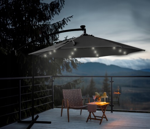 PARASOL OGRODOWY Z OŚWIETLENIEM LED W KOLORZE CIEMNY SZARY