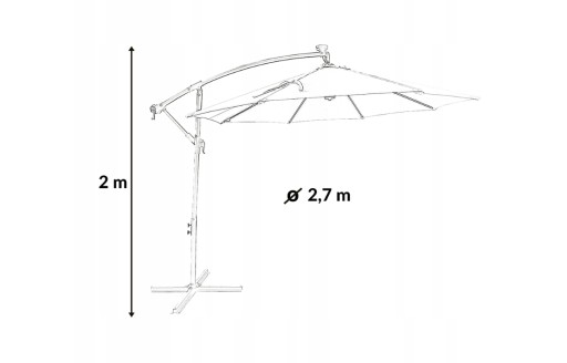 ✔️ Średnica czaszy parasola: 2,7 m (+/- 5%)
