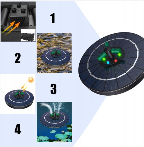 ➡️Ogrodowa fontanna solarna przeznaczona do małych oczek wodnych i innych sztucznych zbiorników wodnych. Pompa wodna pomaga utrzymać równowagę biologiczną w oczku wodnym poprzez odpowiednie napowietrzenie wody, ciągły ruch wody zapobiega jej mętnieniu oraz zarastaniu.