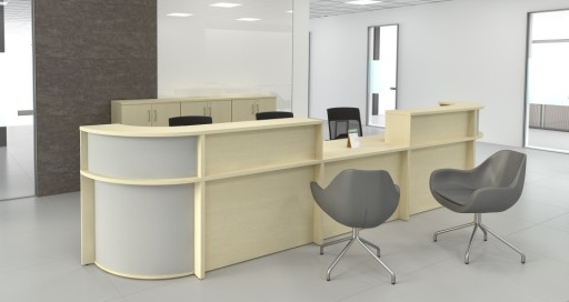 Lada biurowa EKO-1 niska to proste wyposażenie sekretariatu i recepcji. Blat roboczy wykonany z płyty o grubości 28 mm, zapewniający stabilność i komfort użytkowania. Nogi z płyty 18 mm, front z płyty HDF 3 mm. Lada występuje w wielu kolorach. Front lady dostępny tylko w kolorze szarym. Lada posiada regulowane stopki do 10 mm, pozwalające na wypoziomowanie lady na nierównej podłodze.