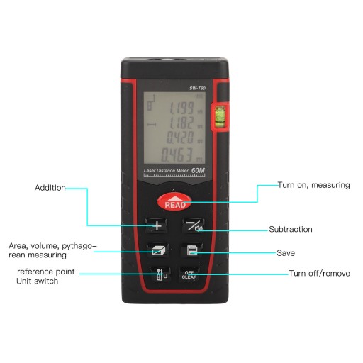 4. [Mocny] Dalmierz laserowy ma 30 rekordów danych i funkcje wywoania zwrotnego i automatycznie wyącza się po 150 sekundach bezczynności, aby oszczędzać energię.