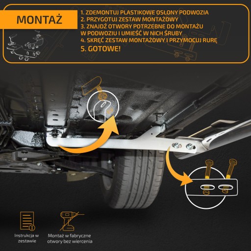 - ✅ Prosty i szybki montaż w oryginalne punkty podwozia