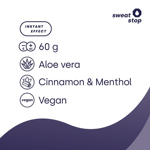 SweatStop® Powder Stick Cinnamon Menthol to unikalny na skalę światową puder w sztyfcie do stóp przeciw poceniu się i powstawaniu nieprzyjemnego zapachu stóp. Dzięki innowacyjnemu aplikatorowi i właściwościom pudru, SweatStop® stanowi światową nowość, która oferuje użytkownikowi szereg korzyści. Wiążące wodę właściwości talku pochłaniają wilgoć, a tym samym pot na skórze, zapewniając przyjemny oraz suchy klimat stóp.