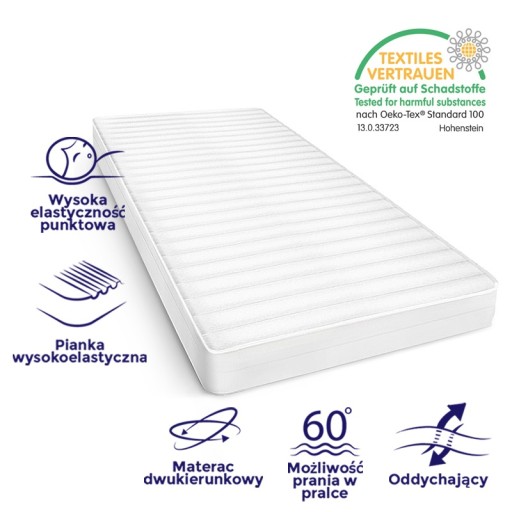 Materac piankowy 7 strefowy został stworzony z myślą o wymagających klientach. Do jego budowy użyto surowców o najwyższej jakości. Elastyczna pianka poliuretanowa użyta do produkcji jest przede wszystkim bardzo trwałym i odpornym na odkształcenia materiałem. Materac piankowy będzie służył nam przez wiele długich lat.