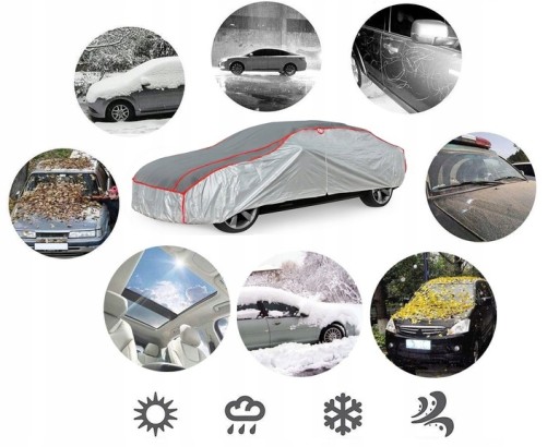 - Opadami atmosferycznymi, takimi jak śnieg, grad i deszcz, które mogą powodować korozję, rdzę i uszkodzenia lakieru. Pokrowiec skutecznie chroni pojazd przed tymi czynnikami.