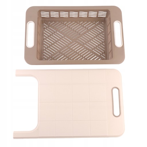 A multifuncitonal chopping block with drain basket, both great for cutting meat, vegetables and washing foods, fruits. 2 in 1 design kitchen cutting board, more convenient for you, and save much room space due to the multifunction design. It is retractable, you can adjust the cutting board to fit your kitchen sink well.