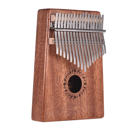 Drewno mahoniowe 17-klawiszowe kalimba o prostym designie i wyśmienitym wykonaniu; potrójne otwory dźwiękowe i 17-karatowe stalowe zęby kartonowe, zapewniające doskonałe brzmienie.