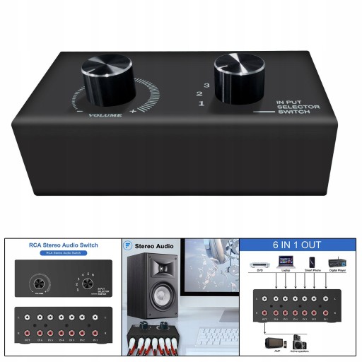 Wzmacniacz audio RCA: 6 grup stereofonicznego interfejsu wejściowego sygnału RCA, 6 wejść audio kanału L/R