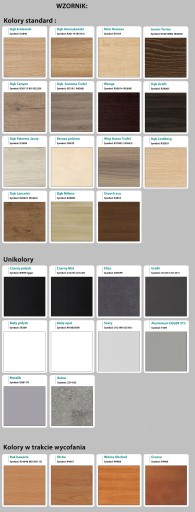 - płyta melaminowana 18mm przy większych ladach 25mm, możliwe kolory do wyboru z palety kolorów.