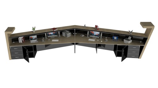 Ekstrawagancka i spektakularna bryła lady R20 zachwyci niemal każdego. Wykonana z najwyższej jakości materiałów może być dodatkowo podświetlona LED. Lada recepcyjna z trójwymiarowym i asymetrycznym układem ścian frontowych spowoduje, iż będzie ona głównym punktem nawet największej przestrzeni.