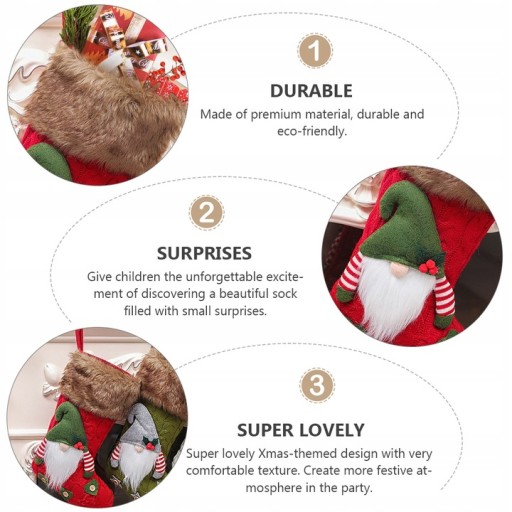 ✅Ta mini świąteczna torba na skarpetki z uroczystym świętem będzie obowiązkowa na Twoim przyjęciu bożonarodzeniowym. Zawieś te skarpetki, aby udekorować choinkę, kominek, drzwi, ścianę, okno lub wypchać je prezentami dla rodziny i przyjaciół. To weź udział w zabawie i śmiech w tym szczęśliwym festiwalu!