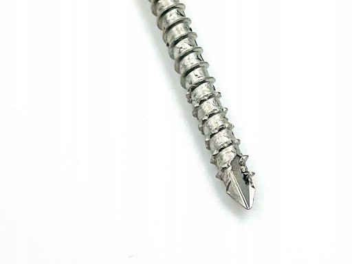 - Karby tnące - Specjalne karby tnące na gwincie przecinają włókna struktury drewna podczas wkręcania