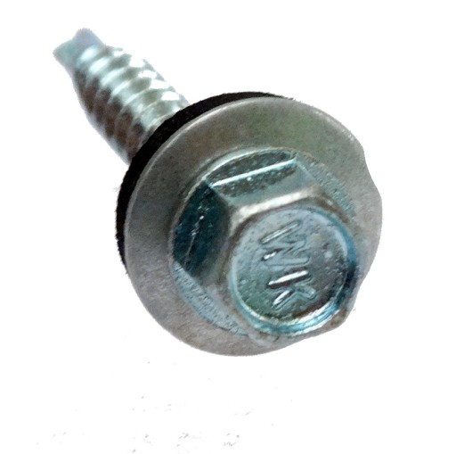 Wkręt samowiercący z podkładką EPDM wykonany w powłoce cynkowej, do mocowania blach, blachodachówki i obróbek blacharskich do podłoża drewnianego. Wkręt typu farmer.