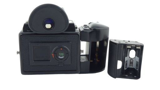 Ma wbudowany napęd silnikowy 1,5 klatki na sekundę, centralny pomiar TTL, wiele automatycznych trybów ekspozycji i mały ekran LCD na górnej płycie, który wskazuje tryb, kompensację ekspozycji, i liczbę ekspozycji. W przeciwieństwie do porównywalnych aparatów średnioformatowych.