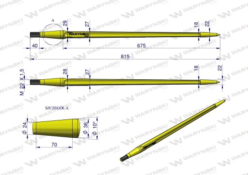 Ząb ładowacza uniwersalny Z L- 880 mm zastosowanie 5193-FT88N Tur WARYŃSKI
