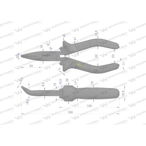 Szczypce wydłużone wygięte 160 mm WaryńskiWARYNSKI