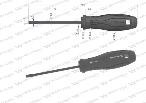 Wkrętak płaski 3 x 75 mm. stal SVCM. WaryńskiWARYNSKI