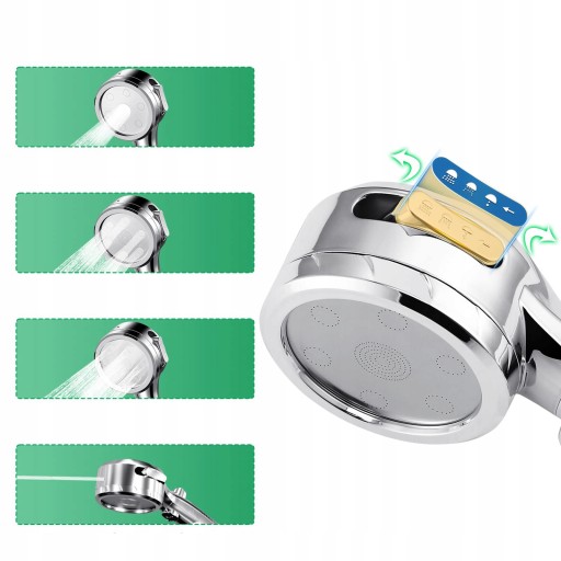 - Prysznic ręczny może przełączać 4 tryby (prysznic, masaż, jet spa i mocne spłukiwanie) za pomocą jednego przycisku, a energooszczędny prysznic ma cztery funkcje doznań.