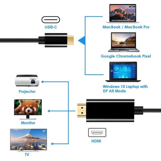 Kabel Typ C na HDMI 4K2K 1,8 metra czarny