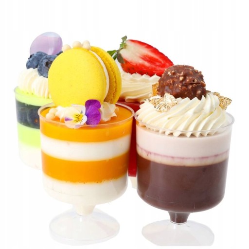 ➡️ Wykonane z trwałego plastiku, te kubeczki na nóżce są bezpieczne w użyciu, jednocześnie gwarantując elegancki wygląd każdego dania.