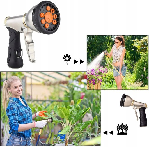 9 trybów natryskiwania: wszystkie Twoje potrzeby! 9 trybów do wyboru: Jet, Full, Soaker, Fog, Flat, Vertical, Angle, Cone i Shower Spay Pattern. Regulowane ustawienia różnych ciśnienia wody, od czyszczenia tarasów po spryskiwaniu delikatnych kwiatów w ogrodzie.