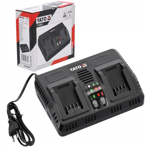 Szybka, podwójna ładowarka wszystkich akumulatorów systemu 18 V YATO.