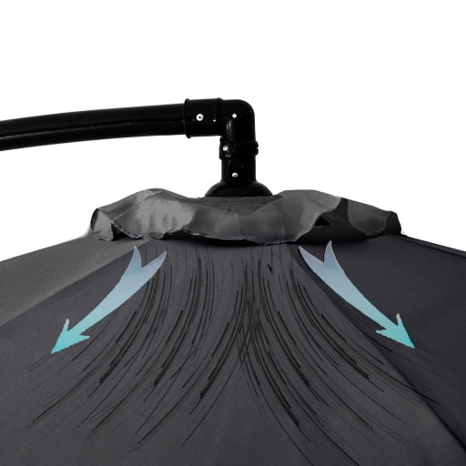 Przebywanie pod osłoną przed słońcem - czy to parasolem czy żaglem, może kojarzyć się z dodatkowym nagrzewaniem się i brakiem cyrkulacji w bezwietrzne dni. Nasz parasol został wyposażony w wentylujący otwór u szczytu czaszy, co zdecydowanie zwiększy komfort użytkowania, zwłaszcza, jeśli pod parasolem bawią się najmłodsi.