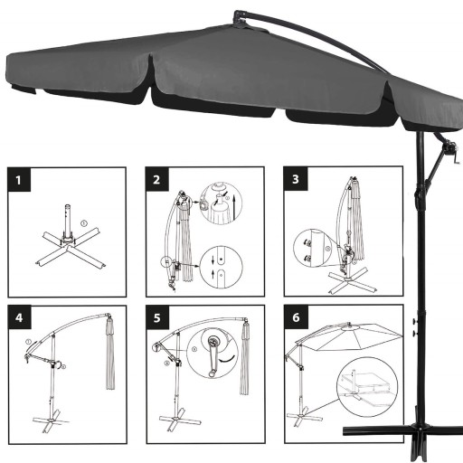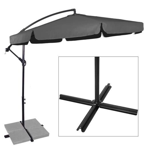 Dla zwiększenia stabilności i bezpieczeństwa, np. przy niespodziewanych podmuchach wiatru, parasol wyposażono w szeroka podstawę, której rozpiętość to aż 100 cm. Dodatkowo wyposażono każdą z jej nóg w otwory, dzięki którym możesz użyć kotw lub specjalnych śrub dedykowanych danemu podłożu, by przytwierdzić podstawę na stałe w dogodnym miejscu. Sam kształt elementów podstawy, pozwala także stosownie ją dociążyć, jeśli uznasz to za bardziej odpowiednie rozwiązanie.