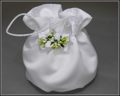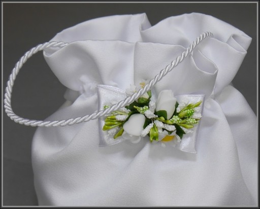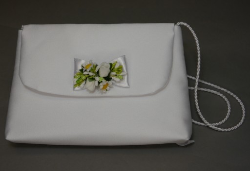 Przypinka do torebki komunijnej. Na pozostałych aukcjach można do niej dobrać np. bransoletkę na rączkę lub wiązany wianek.
