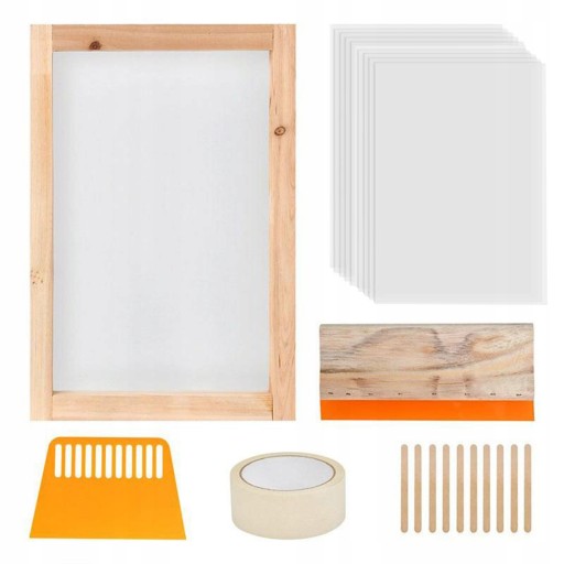 PAKIET ZAWIERA: W tym 1 sztuka 1575x1181 Cal biały zniszczony ramek do sitodruku z 110 biała siatką 1 sztuka ściągaczki do sitodruku 1 sztuka plastikowego skrobaka 10 sztuk folii do drukarek atramentowych 1 sztuka rolki maski 10-częściowy papier patyczek