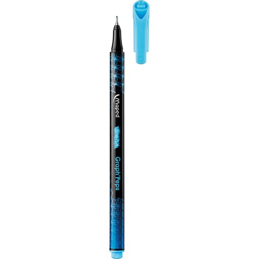 - Cienkopisy Graph'Peps Deco - uniwersalna linia cienkopisów dla każdego, do użycia w szkole, w domu i w biurze. Końcówka oprawiona w metal. Grubość końcówki 0,4 mm. Bezpieczna, wentylowana skuwka z klipsem. Ergonomiczny, trójkątny kształt poprawia komfort pisania. Korpus zdobiony błyszczącymi wzorami w kolorze tuszu.