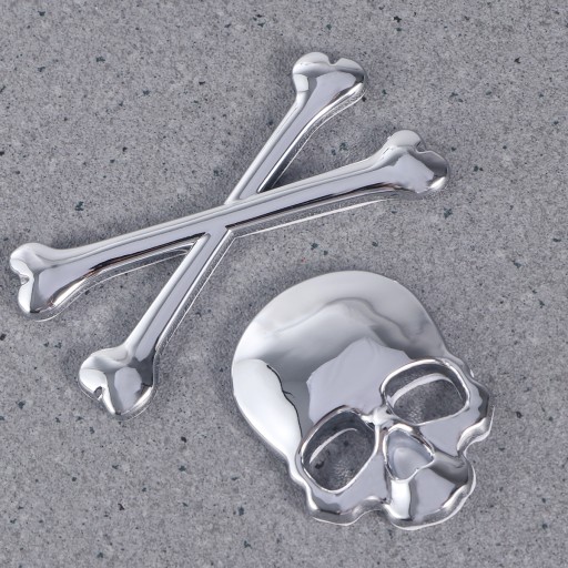 ✅1 * Nowy 3D metalowy szkielet piszczele samochód motocykl naklejka etykieta znaczek z symbolem naklejki do stylizacji samochodów naklejka (srebrna)