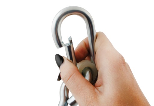 - KARABIŃCZYK W ZESTAWIE –stosowany do mocowania huśtawek, hamaków itp. Bardzo solidny karabińczyk został zamontowany na teflonowym łożysku.