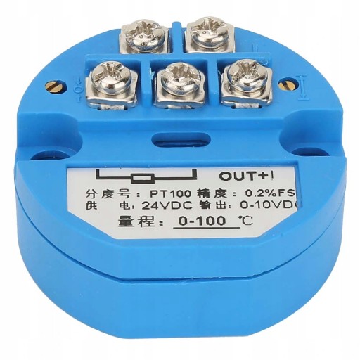 Przekształca sygnał termopary przemysłowej rezystancji termicznej na sygnał wyjściowy 0-10V, w liniowej zależności od sygnału wejściowego lub sygnału temperatury.