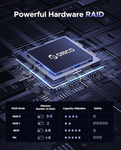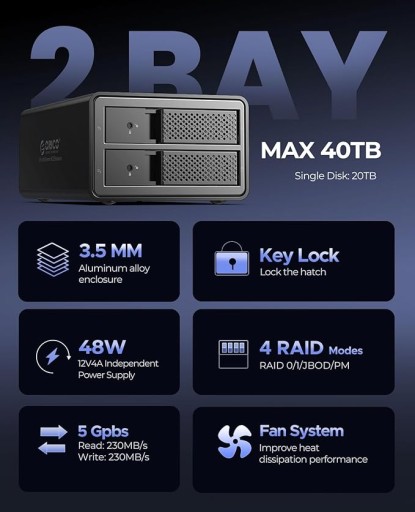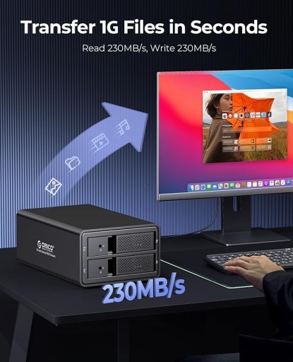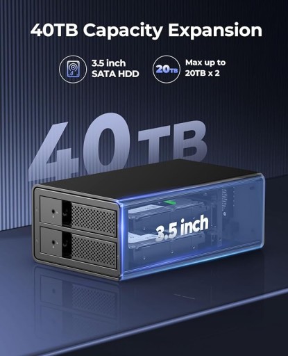 Duża kompatybilność Kompatybilny dysk twardy SATA 2,5/3,5" (aby zainstalować dysk twardy 2,5", należy samodzielnie przygotować uchwyt na dysk twardy), obsługuje do 2 dysków twardych 16 TB, całkowita pojemność do 32 TB. Obsługuje Windows XP/Vista/7/8/10/11, Mac OS X 10.2 i nowszy oraz Linux.