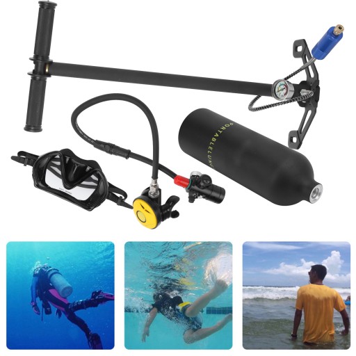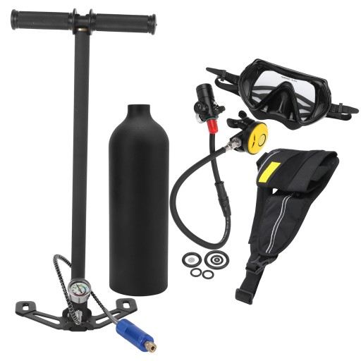 DIDEEP 1L Zbiornik do nurkowania Przenośny zbiornik tlenu Podwodny sprzęt do oddychania Zestaw do nurkowania Czarny zbiornik na tlen z czarnymi goglami