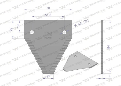 Нож уборочный 84x76x3мм отв. 6,5 применение 611203.1 Claas WARYŃSKI (продажа)