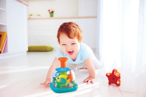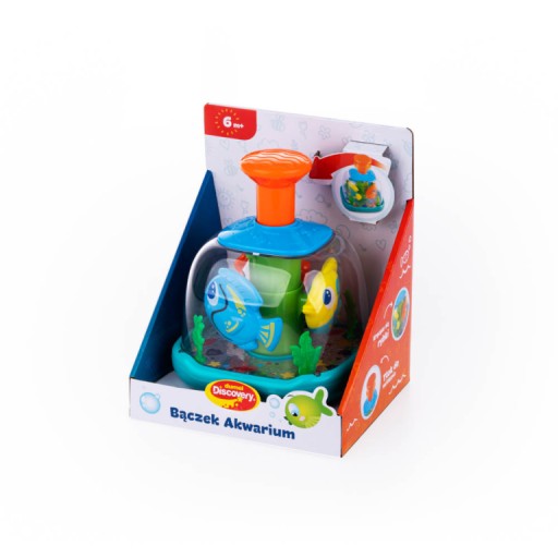 Wirująca zabawa w podwodnej odsłonie! Ten wesoły bączek jest wypełniony rybkami i morskimi roślinkami. Im szybciej maluch będzie wciskał pomarańczowy tłok, tym szybciej będą się kręcić rybki. Nasadę bączka i tłok zdobią wypukłe wzory, idealne do eksplorowania małymi rączkami.Produkt przeznaczony jest dla dzieci od 6 miesiąca życia. Cechy produktu:kręcące się rybki;tłok do wciskania z wypustkami o zróżnicowanej fakturze;wiek: 6m+.