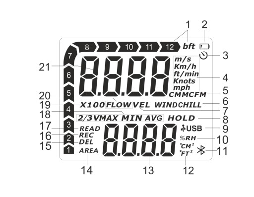 - Rozdzielczość: 0.01 (m/s) / 1.968(Ft/min) / 0.019 (Węzły) / 0.036 (Km/h) / 0.022 (Mph)
