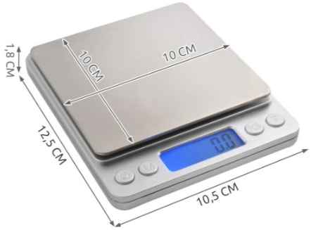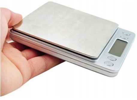 Waga posiada platformę ze stali nierdzewnej o wymiarach 10cmx10cm oraz podświetlanym wyświetlaczem LCD.