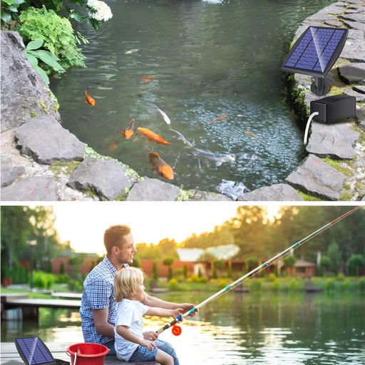 ✔️ 【Niski poziom hałasu i wodoodporność】 Solidna cicha pompa tlenu, pompa tlenu o niskim poziomie hałasu 50 dB, z 2 wężami, 2 kamieniami napowietrzającymi. Uwaga: Panel słoneczny musi być w pełni wystawiony na działanie promieni słonecznych.