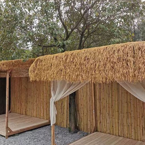 Znajduje się tam dach ze sztucznej strzechy, który można wykorzystać do dekoracji ogrodu, dekoracji chat, dekoracji barów, dekoracji ścian z znakami handlowymi, dekoracji ścian restauracji itp. Nadaje się do małych ogrodów ozdobnych. Wykonany z bezpiecznego materiału, ten produkt jest trwały i niezawodny w użyciu.