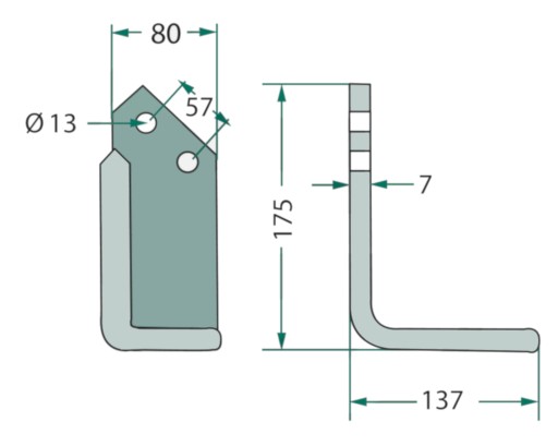 Nóż kątowy glebogryzarki Howard Kongskilde lewy ze śrubami