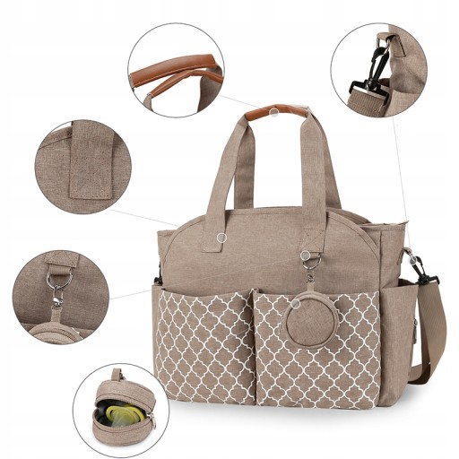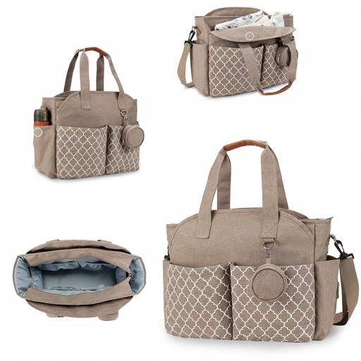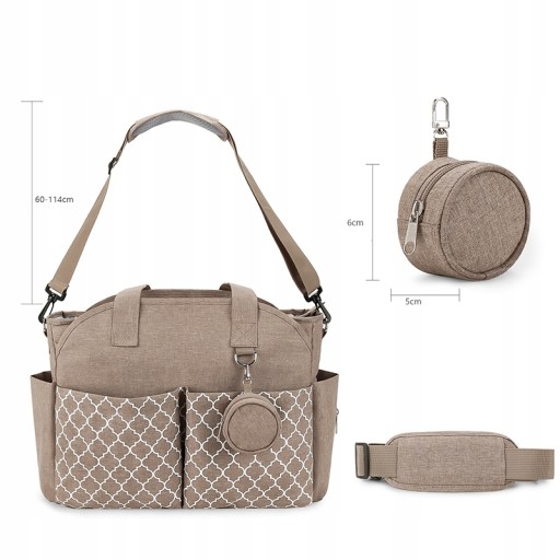 - 2 duża kieszeń zapinana na suwak na klapach ze strzałkami, idealna na ubranka dla niemowląt lub ubranka na zmianę