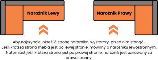 - Narożnik z wyborem strony — prawostronny lub lewostronny (prosimy o wpisanie wybranej strony podczas zakupu),