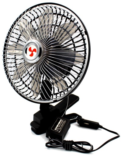 Wentylator można przymocować do kokpitu samochodu przy użyciu klipsa. To wyśmienite urządzenie które pozwoli schłodzić wnętrze samochodu w upalne dni. Został zbudowany z 8 calowego wiatraka, które możemy regulować zarówno w pionie jak i poziomie, pozwala na odchylenie oraz obrót w dowolnym stopniu. Na przewodzie znajduje się sterowniki który ma 3 opcje: Wolno, Szybko, Wyłączony. Dodatkowo wentylator posiada oscylację.