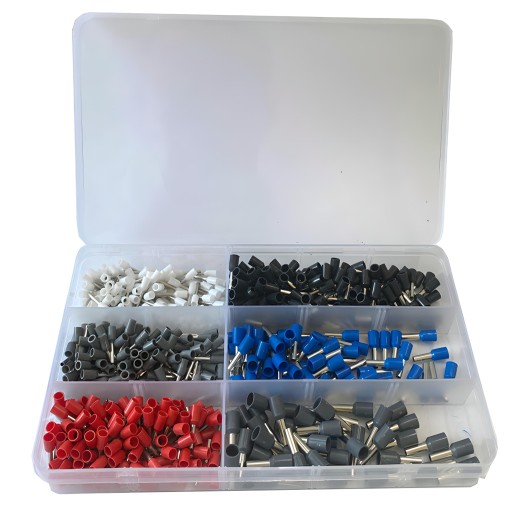 Zestaw zawiera organizer 600 sztuk tulejek pojedynczych, w różnych rozmiarach i kolorach. Prawidłowo zaciśnięte tulejki nawet po wielokrotnym montażu w terminalu zapewniają poprawny kontakt.