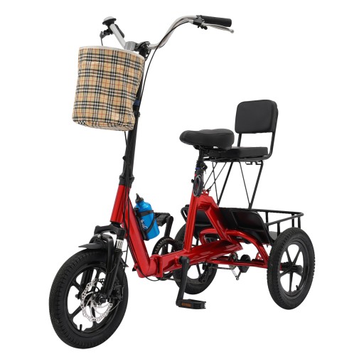 Складной трехколесный велосипед 14 дюймов для взрослых красный велосипед с корзиной