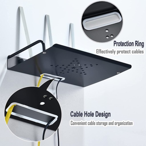 Półka ścienna skrzynki kablowej TV ma otwór z pierścieniem ochronnym, który jest wygodny do organizowania i przechowywania wielu przewodów, skutecznie chroniąc przewody i nie raniąc przewodów.